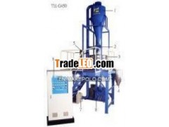 TSAI HUNG's pulverizing system was developedfor the pulverizing of various types of plastic material, rubber,plants, grains and mineral such as HDPE, MDPE, LDPE, PVC and otherthermoplastics into rotomoulding powders. This unit can besuccessfully pulverized not only virgin material, but also recycledmaterial from production waste. Characteristic: ***** powderquality for highest demands 2.Quality powders with excellent flowcharacteristics, high bulk density and consistent powder sizes3.High throughout capacity at low, specific power consumption4.Pulverizing without using liquid nitrogen 5.Plastic material isable to distrubute well in complicated moulds Operation Method: Thescrap-shaped or granule-shaped material stored in a storage bin andthen fed to the Disc Mill by a roller feeder. Pulverization of thefeed material takes place on fixed and rotating disc. The materialis sucked out of the mill by a fan and is then conveyed to acyclone. Through the roll loading valve, the powder is onto aspecial screening machine. Any resulting oversized particles arereturned automatically to the mill for repulverization. The finishpowder is bagged. An all-metal separator, a filter, a cooler, agranules and powder conveyitem as well as laboratory systems canoptionally be offered. 1. Cyclone 2. Roll loading valve 3.Screening machine 4. Storage bin (powder) 5. Storage bin (material)6. Control box 7. Fan 8. Disc mill-G450Complete Installation Of Pulverize Series